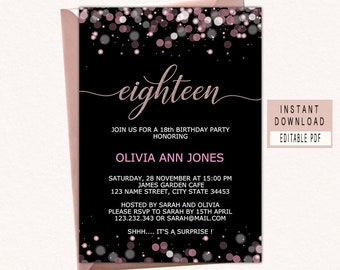 18th Birthday Invitation Printable Pink Black Birthday Etsy Printable Birthday Invitations Invitation Card Sample 18th Birthday