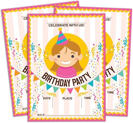 Amazon Com Darling Souvenir Multicolor Birthday Invitation Card Printable Fill Or Write In Blank Invites Party Supplies Pack Of 28 5 X 7 Inches Home Kitchen