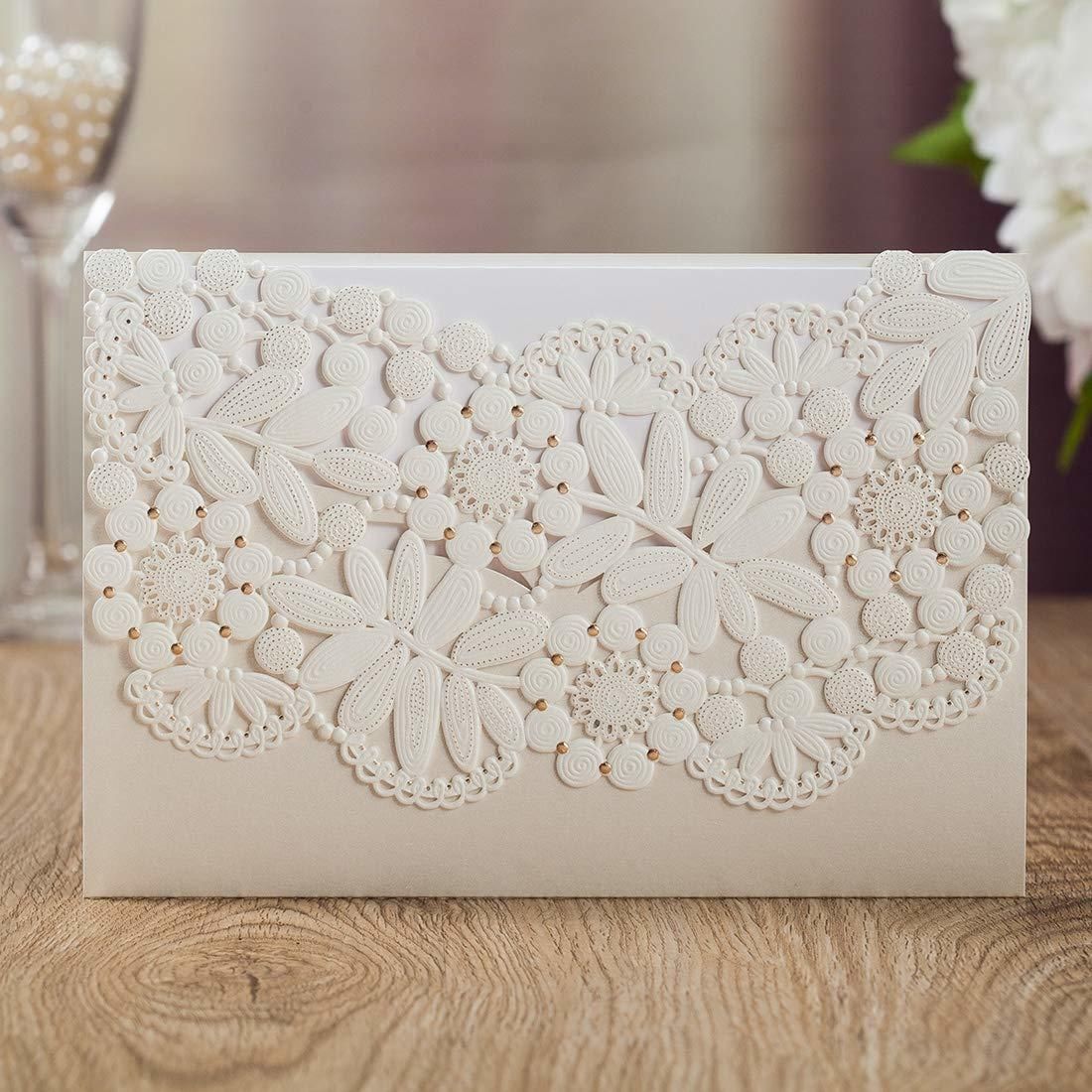 Amazon Com Wishmade Laser Cut Wedding Invitation Card With Embossed Ribbon Design Printable Blank Paper Sleeve For Wedding Invites With Envelope Matched With Rsvp Thank You Cards 50pcs Health Personal Care