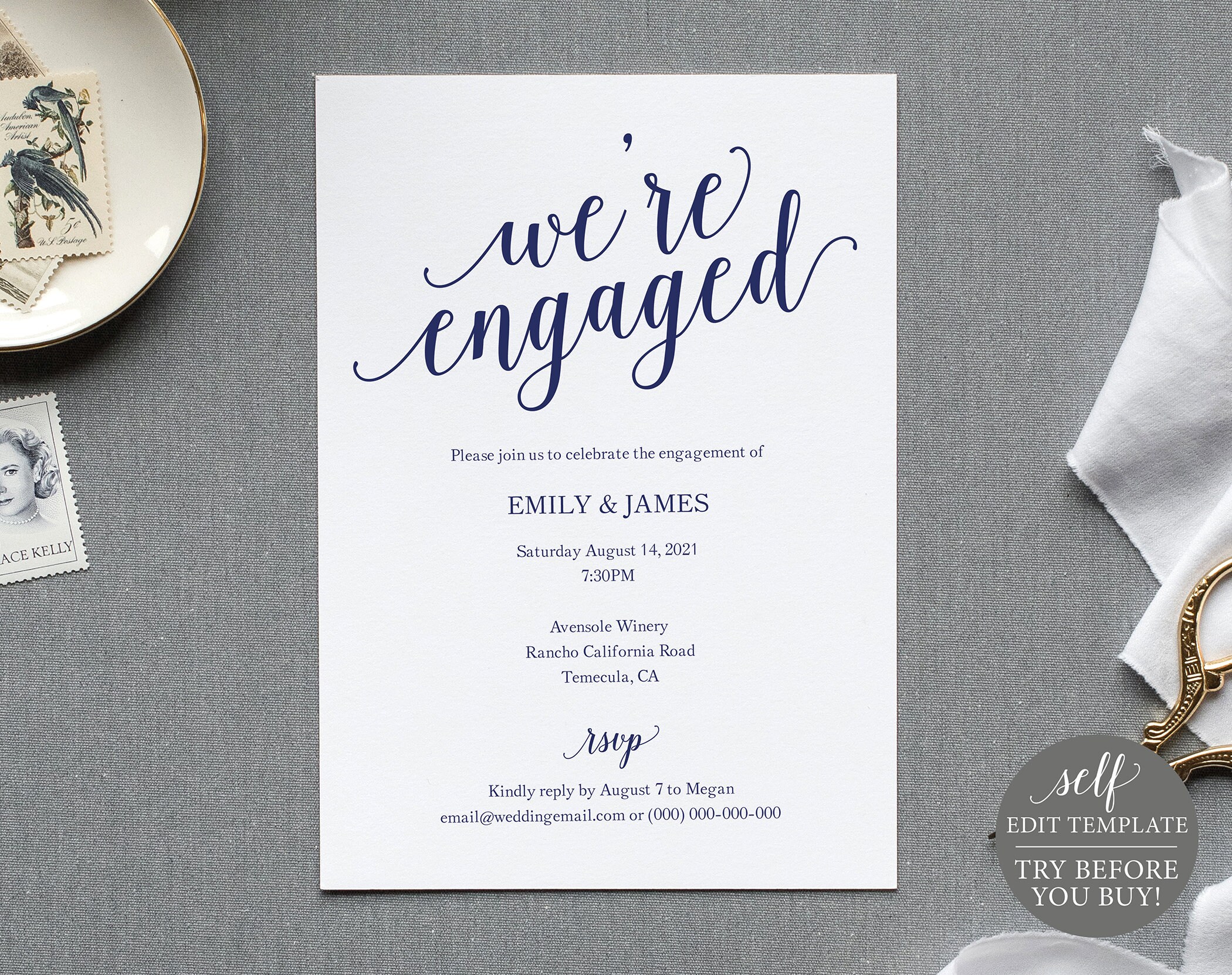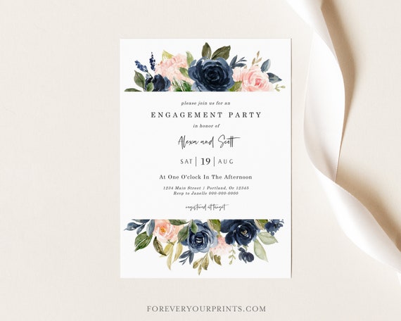 Navy Engagement Party Invite Template Try Before You Buy 100 Editable Instant Download