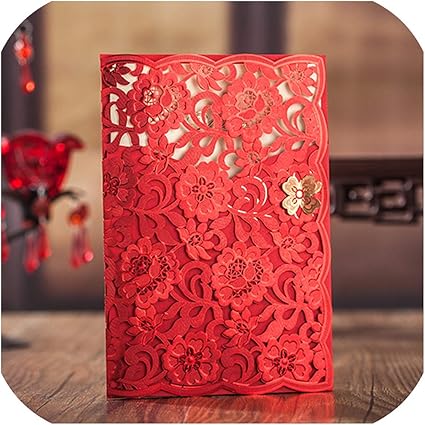 Amazon Com Chinese Red Traditional Style Laser Cutting Invitation Cards Wedding Party Invitation Card Customizable Inner Sheet Red 100 Kitchen Dining