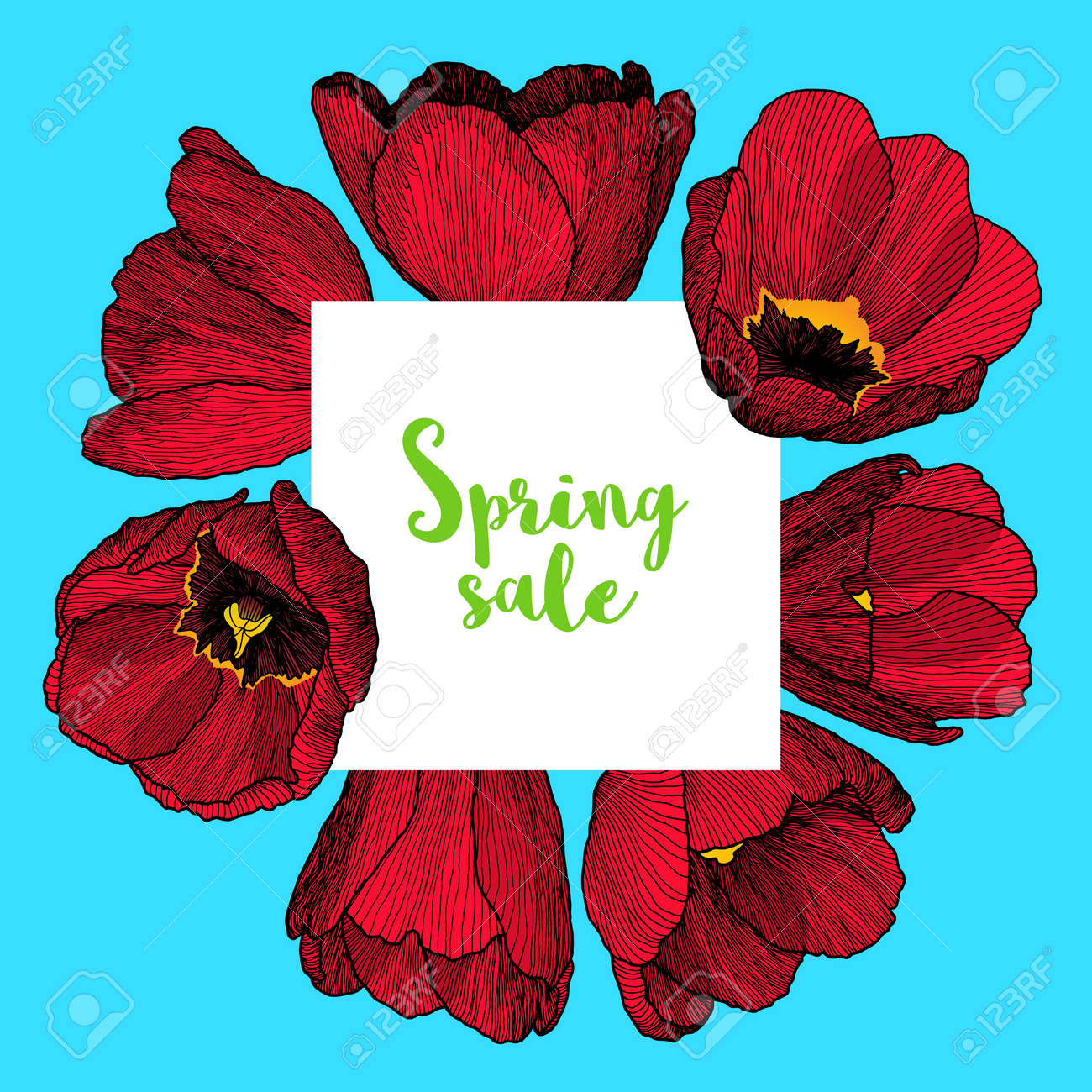 Vector Square Frame With Hand Drawn Ink Graphic Red Tulip Flowers Royalty Free Cliparts Vectors And Stock Illustration Image 59950461