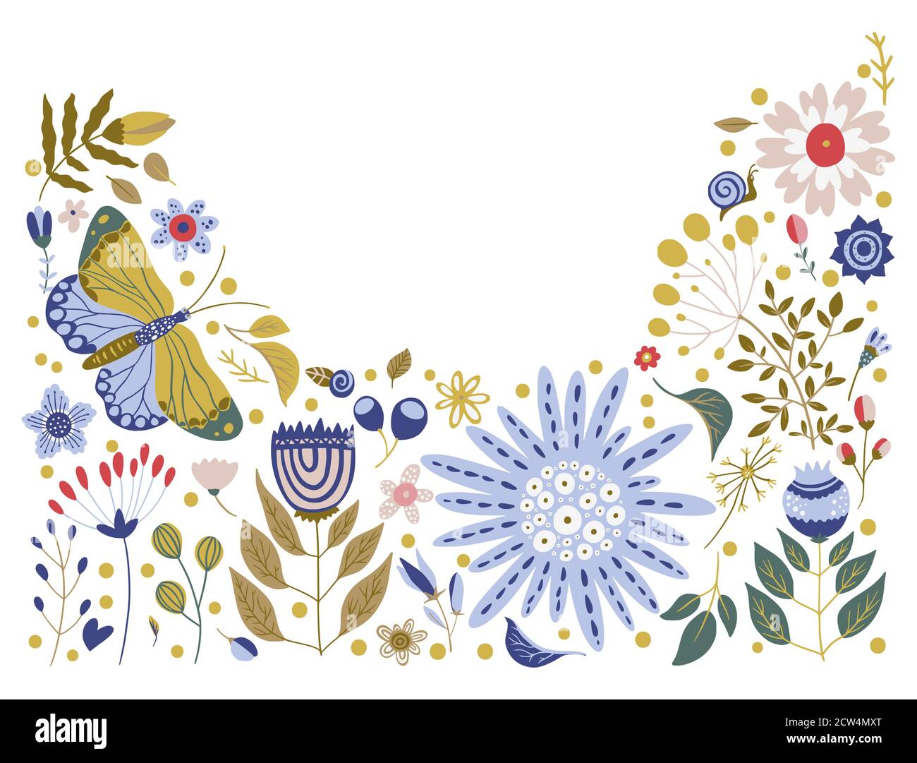 Illustration Of Leaves Plants Branches Butterfly And Flowers With White Background Hand Drawn Border For Cards Invitations Logo Greeting Wedding Invite Template Illustration Vector Frame Stock Vector Image Art Alamy