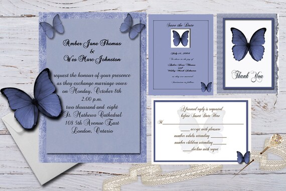 Digital Blue Butterfly Design Wedding Invitation Package Etsy