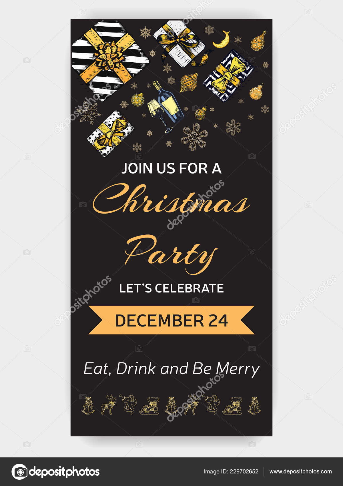 Christmas Invitation Party Vector Vecrtical Poster Card Background Design Template For Noel Xmas Holiday Celebration Clipart 2019 New Year Colors Printable Dance Music Night Club Concert Party Poster Clip Art K61371738 Fotosearch