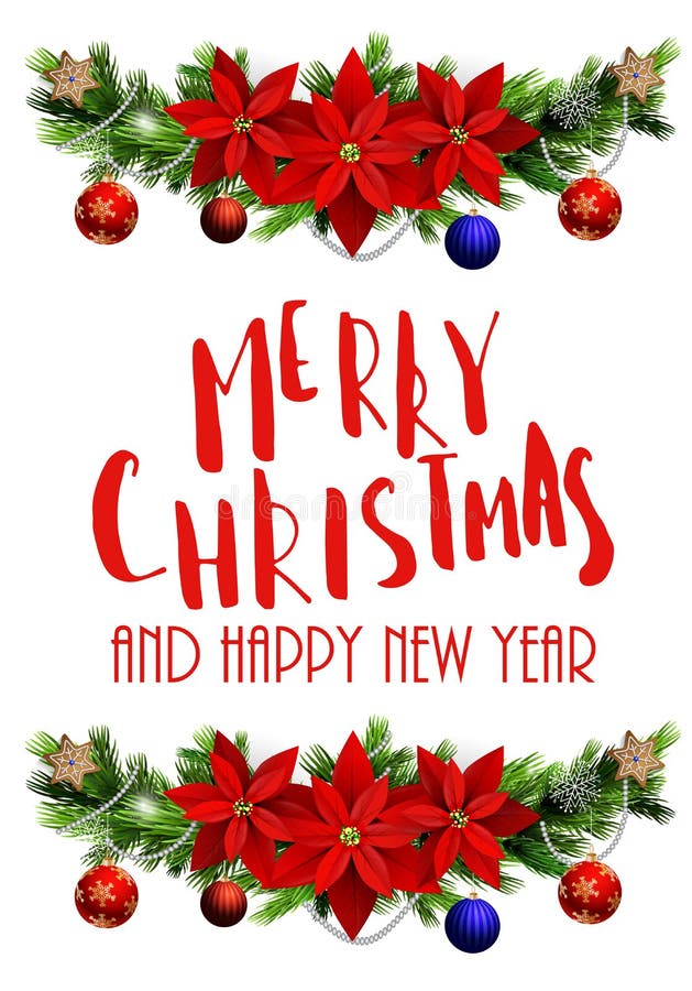 Merry Christmas Party Invitation And Happy New Year Party Invitation Card And Poster Holiday Design Template Christmas Decoration Fir Tree Poinsetia Stock Vector Image Art Alamy