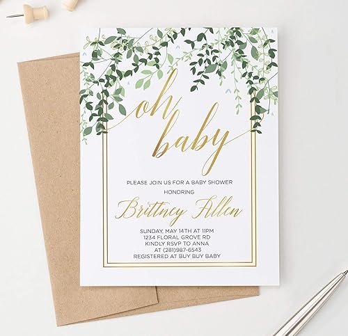 Amazon Com Modern Greenery Elegant Boy Baby Shower Invitations Or Girls Personalized Baby Shower Invitations Gender Neutral Your Choice Of Quantity And Envelope Color Handmade