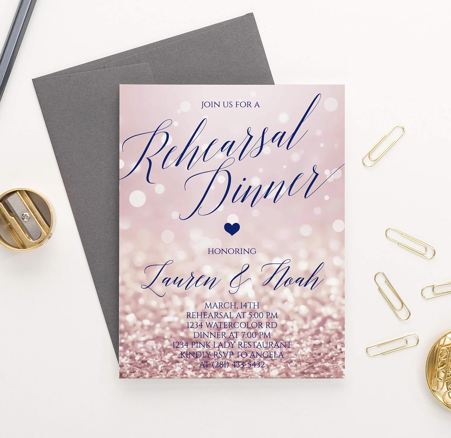 Amazon Com Modern Rehearsal Dinner Invitation Rose Gold Sparkles Rehearsal Dinner Party Invites Your Choice Of Quantity And Envelope Color Handmade
