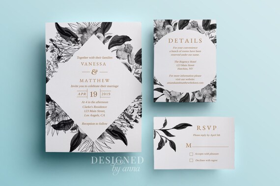 Gold And Black Wedding Invite Template Wedding Invite Etsy