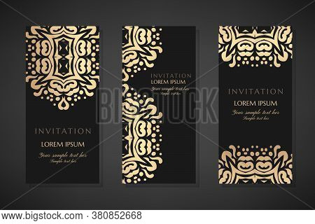Invitation Templates Cover Design With Gold Ornaments And Black Background Vector Decorative Vertical Flayers With Copy Space Stock Illustration Download Image Now Istock