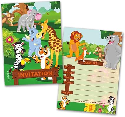 Amazon Com Party Invitation Cards 20 Cards With 20 Envelopes Jungle Animals Themed Flat Style Colorful Design Birthday Invitations Party Invitations Invitation Card Birthday Party Invitation Toys Games
