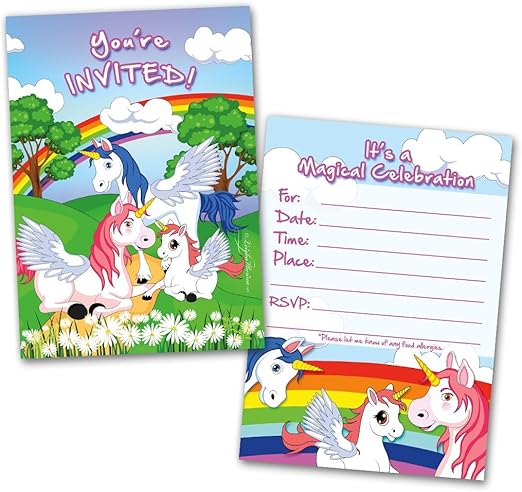 Amazon Com Unicorns And Rainbows Party Invitation Cards 20 Cards With 20 Envelopes Birthday Invitations Party Invitations Invitation Card Birthday Party Invitations Flat Style Colorful Design Kitchen Dining