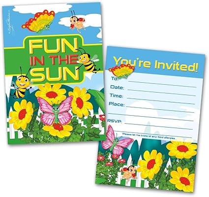 Amazon Com Party Invitation Cards 20 Cards With 20 Envelopes Fun In The Sun Themed Flat Style Colorful Design Birthday Invitations Party Invitations Invitation Card Birthday Party Invitations Toys Games