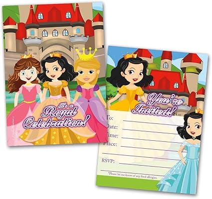 Amazon Com Princess Party Invitation Cards 20 Cards With 20 Envelopes Birthday Invitations Party Invitations Invitation Card Birthday Party Invitations Flat Style Colorful Design Toys Games