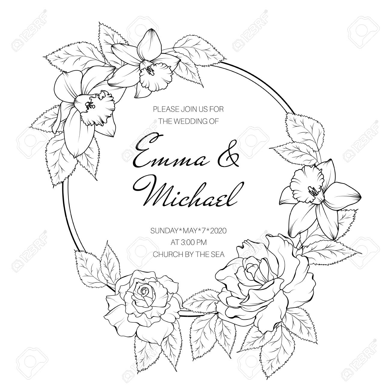 Floral Wreath Round Frame Decorated With Rose Peony Narcissus Royalty Free Cliparts Vectors And Stock Illustration Image 118580055