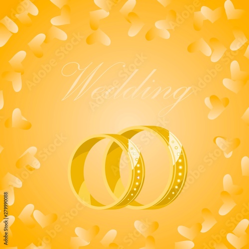 Vector Golden Wedding Rings On Yellow Background With Gold Hearts Rings For The Bride And Groom For The Wedding Background For The Card Invitation Cards Engagement Cards Buy This Stock Vector