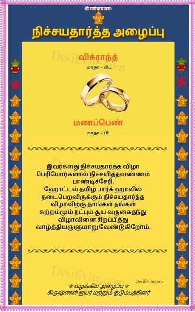 16 Engagement Invitation Template In Tamil In 2020 Engagement Invitation Template Traditional Wedding Invitation Wording Free Wedding Invitation Templates