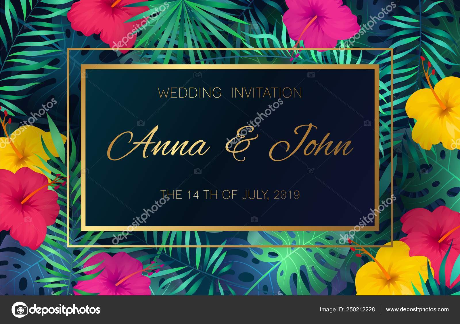 Wedding Event Invitation Card Template Exotic Tropical Jungle Rainforest Bright Stock Vector C Anna Bo 196156662