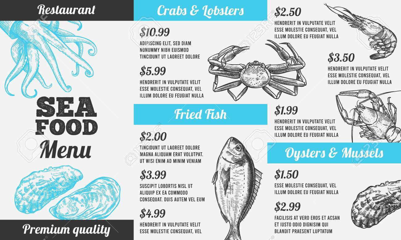 Seafood Menu Hand Drawn Marine Fresh Fishes Gourmet Food Design Royalty Free Cliparts Vectors And Stock Illustration Image 153533536