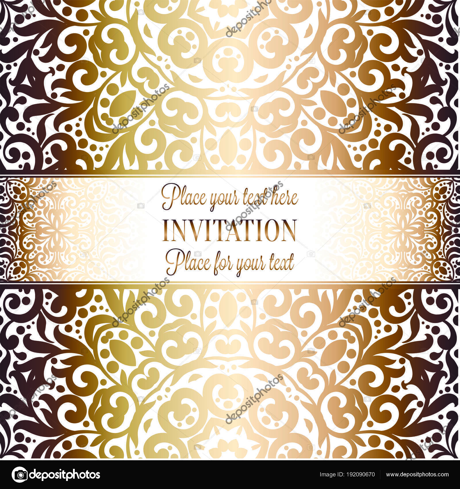 Gold Wedding Invitation Card Template Design With Damask Pattern On Background Tradition Decoration For Wedding In Baroque Style Stock Vector C Miamilky 192090670