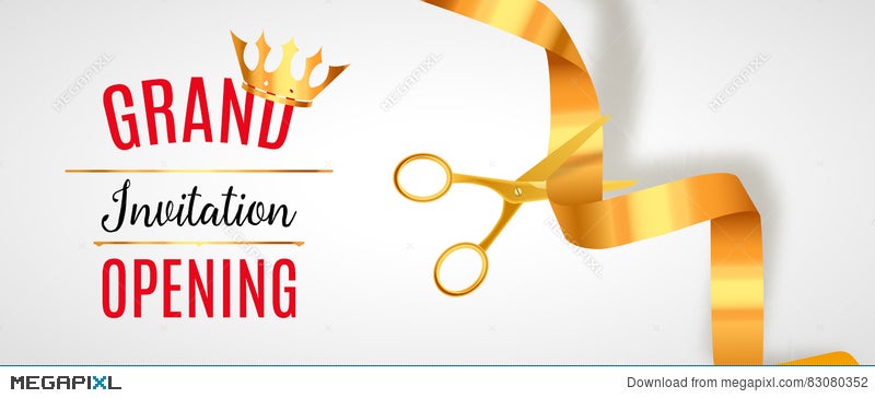 Grand Opening Invitation Banner Golden Ribbon Cut Ceremony Event Grand Opening Celebration Card Illustration 83080352 Megapixl