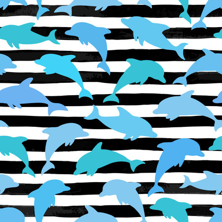 Seamless Pattern With Dolphin On Black And White Striped Background Design For Holiday Greeting Card And Invitation Of Baby Shower Birthday Child Clothes Summer Holidays Beach Party Traweling موقع تصميمي