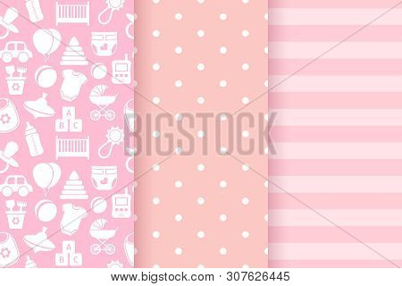 Vector Clipart Seamless Pattern With Toys Horses And Stars Newborn Girl Pink Color Background Design For Baby Shower Card Invitation Etc Vector Illustration Gg92316441 Gograph