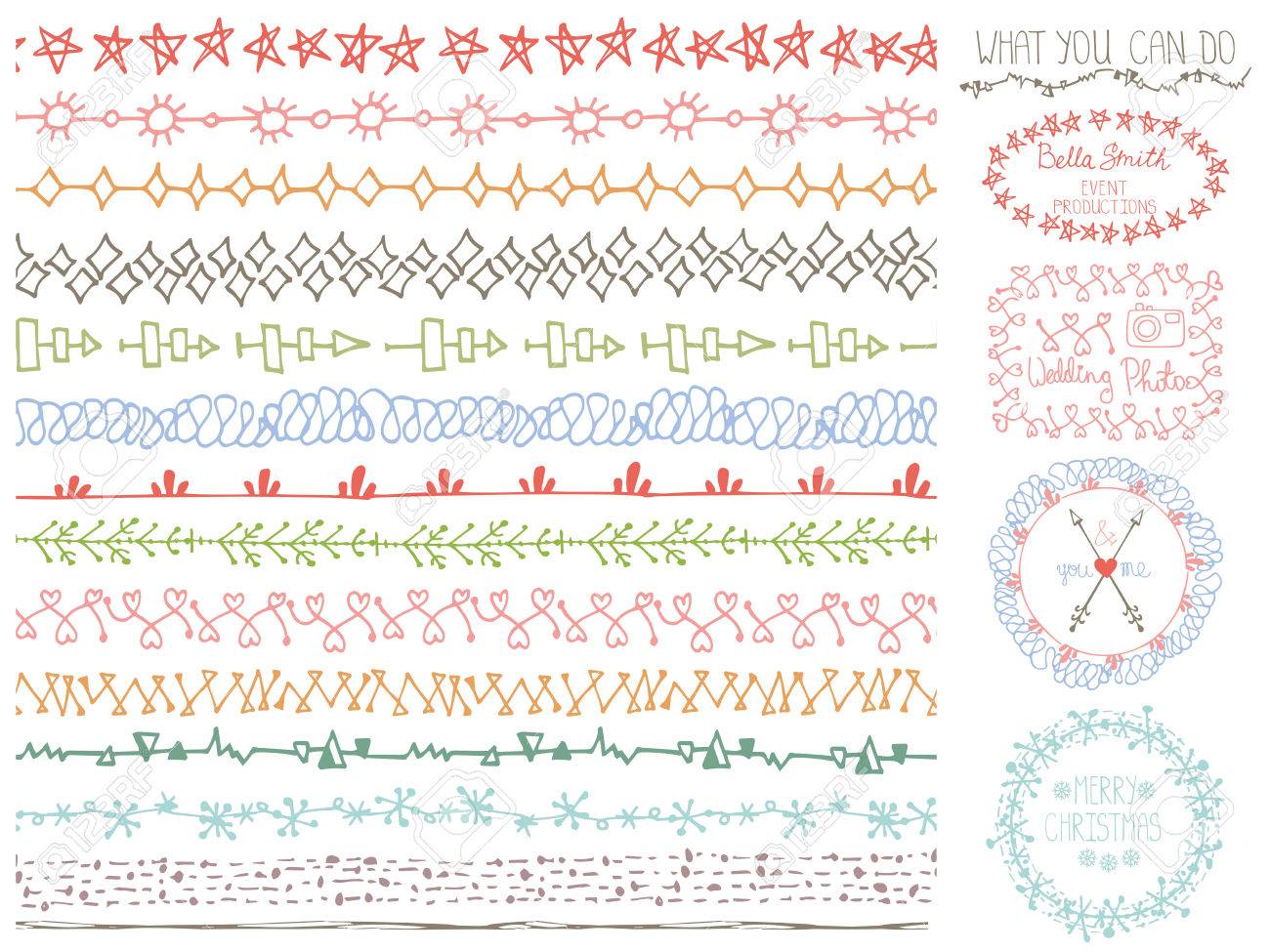 Doodle Hand Drawn Seamless Line Borders Set Colored Logo Stock Vector Illustration Of Element Cartoon 74059174