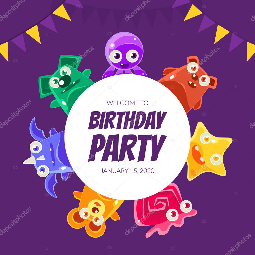 Welcome Birthday Party Banner Template Invitation Card Poster With Cute Funny Jelly Monsters Vector Illustration Web Design Premium Vector In Adobe Illustrator Ai Ai Format Encapsulated Postscript Eps Eps Format