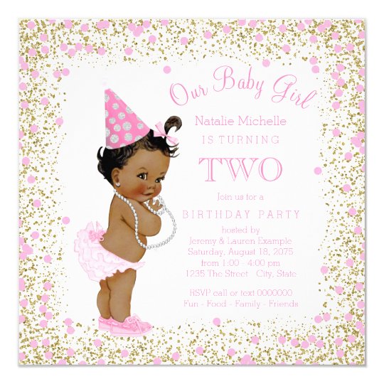 Pink Gold Glitter Ethnic Girls 2nd Birthday Party Invitation Zazzle Co Uk