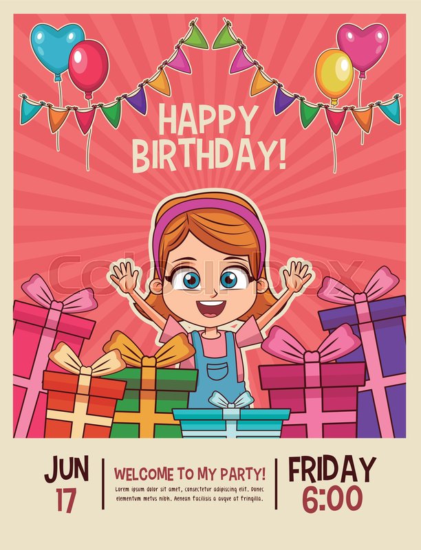 Set On Birthday Kids Party Invitation Card Vector Illustration Graphic Design Canstock