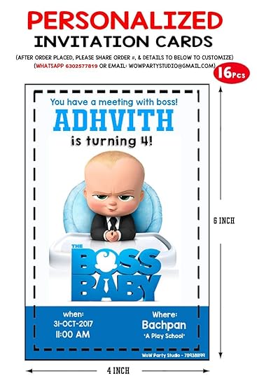 Wow Party Studio Personalized Boss Baby Theme Invitation Cards With Birthday Boy Girl Name Amazon In Toys Games