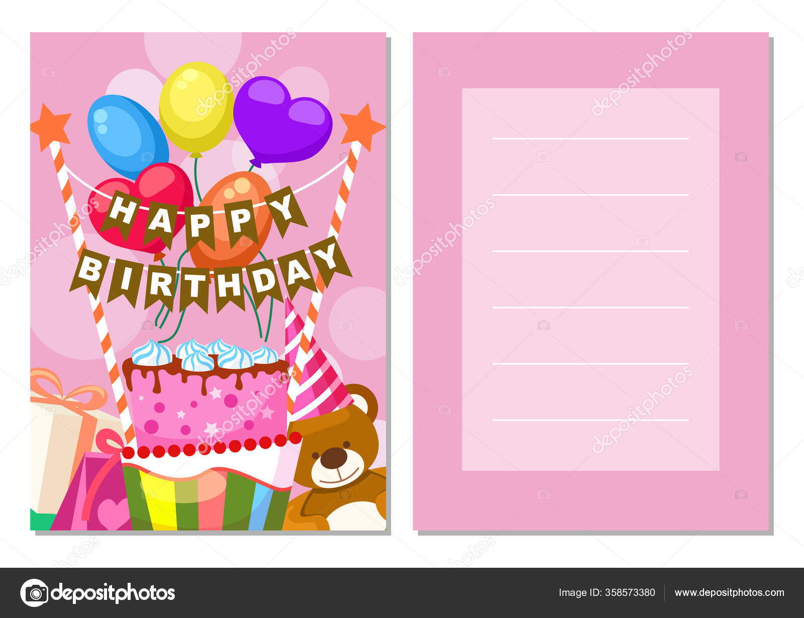 Happy Birthday Kids Postcard Set Holiday Congratulation Greeting Card Birthday Stock Vector C Studioworkstock 358573380