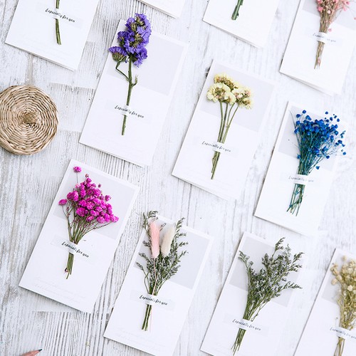Handmade Dried Flower Wedding Invitations Birthday Party New Year Greeting Card
