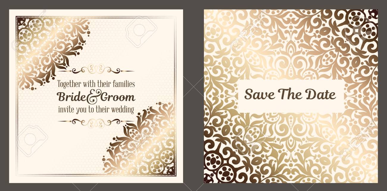 Wedding Invitation Card With Gold Shiny Eastern And Baroque Rich Royalty Free Cliparts Vectors And Stock Illustration Image 125413913
