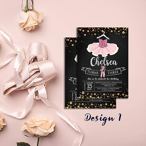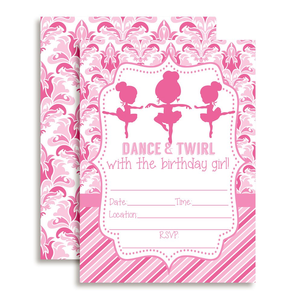 Dance And Twirl Ballerina Birthday Party Invitations For Girls 20 5 X7 Fill In Cards With Twenty White Envelopes By Amandacreation Amazon In Home Kitchen