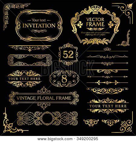 Horizontal Shine Golden Color Square Traditional Vintage Floral Design Border Frame Decorative Invitation Card Sign Printing Stock Vector Image Art Alamy