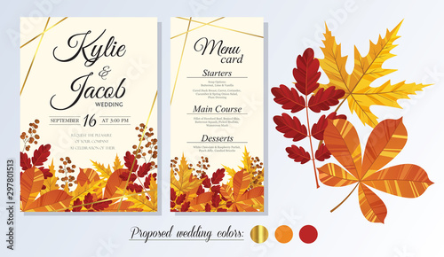 Wedding Invitation Menu Card Leaves Design Autumn Foliage Collection Oak Maple Chestnut And Ash Decorative Frame Print Vector Elegant Cute Rustic Greeting Invite Postcard Buy This Stock Vector And Explore Similar