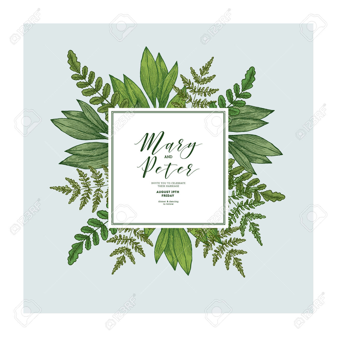Wedding Invitation Template With Green Fern Leaves Design Illustration Royalty Free Cliparts Vectors And Stock Illustration Image 92843578