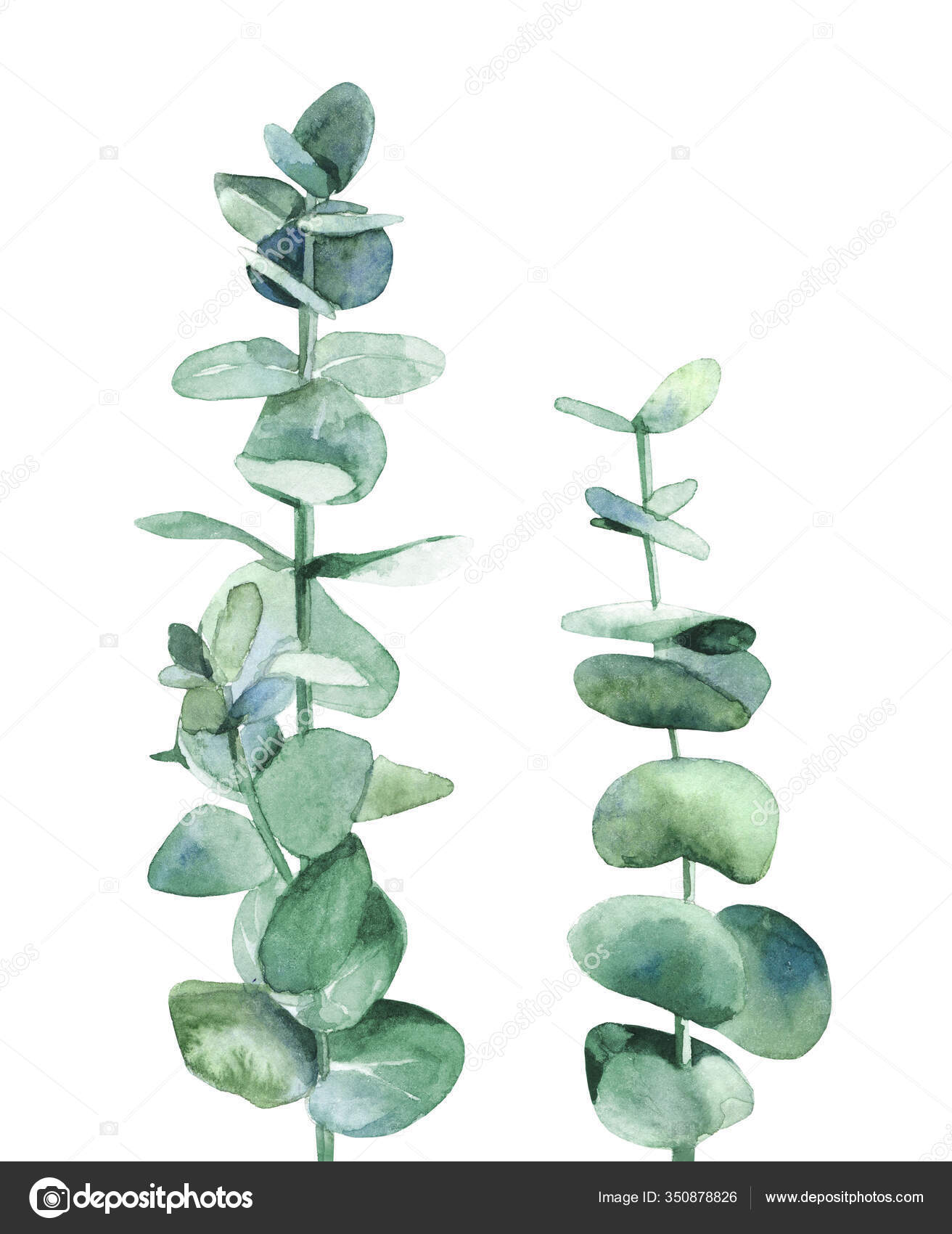 Silver Blue Eucalyptus Branch Botanical Plant Leaves Design For Wedding Invitation Greeting Card Post Card And Textile Watercolour Illustration On White Background Stock Photo C Artbyasolo 350878826