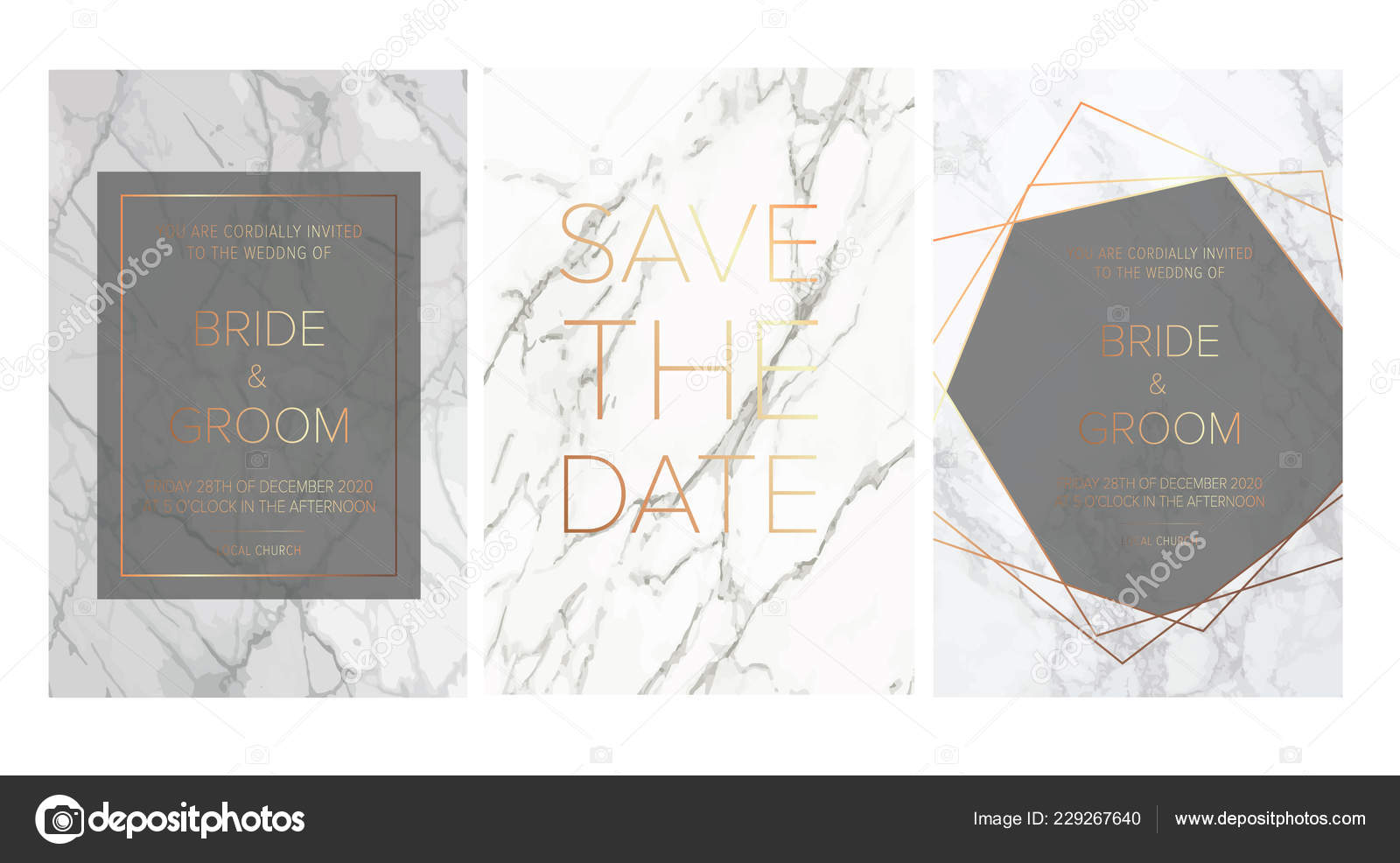 Premium Vector Marble Wedding Invitation Cards Set Luxury Wedding Invite Cards With Golden Marble Texture And Gold Border Design Vector Design Template
