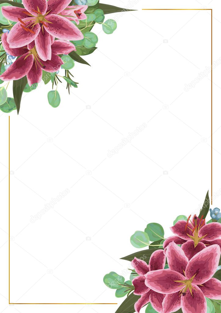 Wedding Invite Invitation Card Vector Floral Greenery Design Eucalyptus Burgundy Lily Waxflower Natural Botanical Green Square Decorative Fram Premium Vector In Adobe Illustrator Ai Ai Format Encapsulated Postscript Eps Eps Format