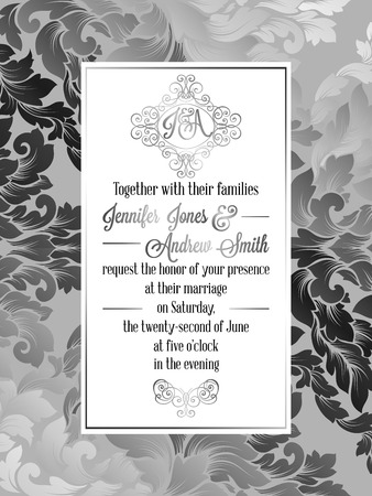 Vintage Baroque Style Wedding Invitation Card Template Elegant Formal Design With Damask Background Traditional Decoration For Wedding Gold And Black Stock Vector C Miamilky 161360926