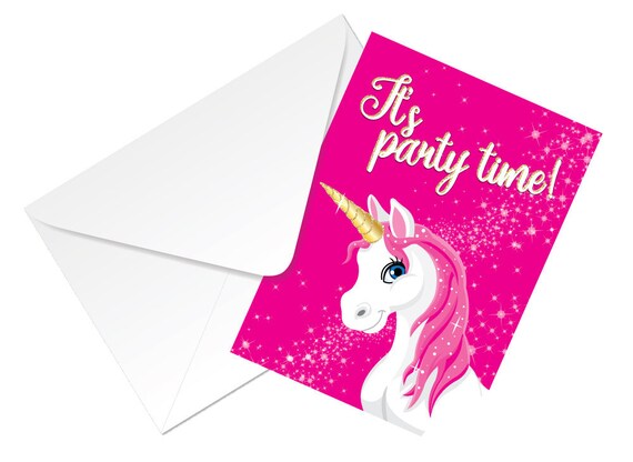Party Invitation Cards White Unicorn With Pink Background Etsy