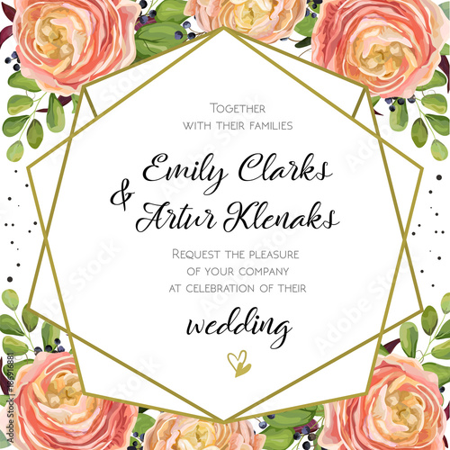 Watercolor Floral Border Decoration For Wedding Invitation Card Corner Flowers Illustration Of Peach Roses Leaves Branches Composition Isolated White Background Buy This Stock Photo And Explore Similar Images At Adobe Stock