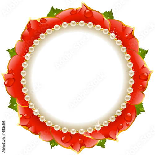 Red Floral Circle Frame Flower Of Rose And Pearl Border Isolated On White Background Round Valentines Day Card Wedding Invitation Or Romantic Lovely Design Vector Illustration Wall Mural Denis Fonchikov