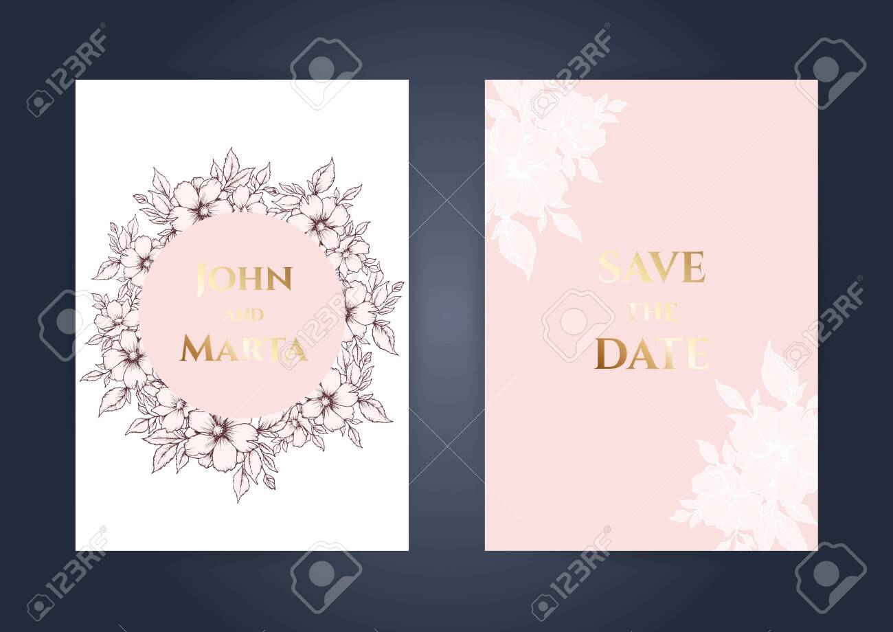 Botanical Wedding Invitation Vintage Save The Date Floral Invite Thank You Rsvp Rustic Card Design With Gold Foil Decoration Vector Elegant Modern Template Trendy Cover Graphic Poster Retro Brochure Design Template Stock