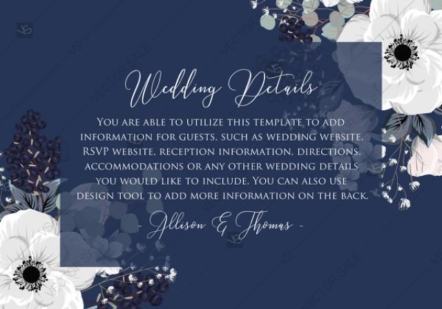Wedding Details Card Invitation Set White Anemone Flower Template On Navy Blue Background Pdf 5x3 5 In Wedding Invitation Maker 2950210 Weddbook