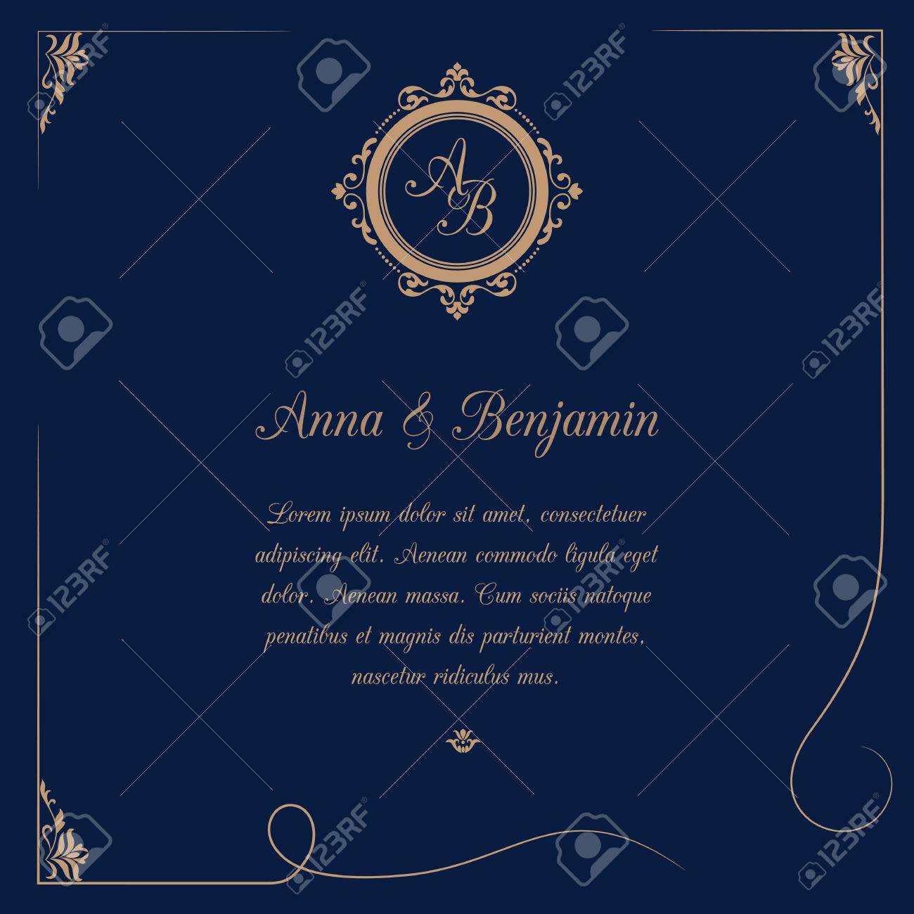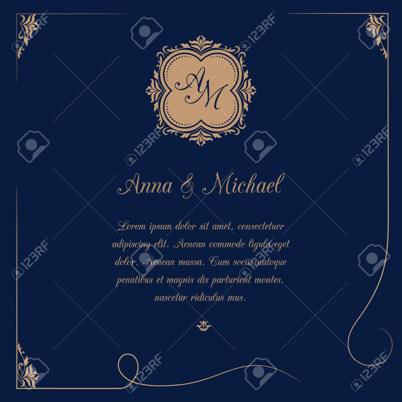 Invitation Card With Monogram On Dark Blue Background Wedding Stock Photo Picture And Royalty Free Image Image 48971965
