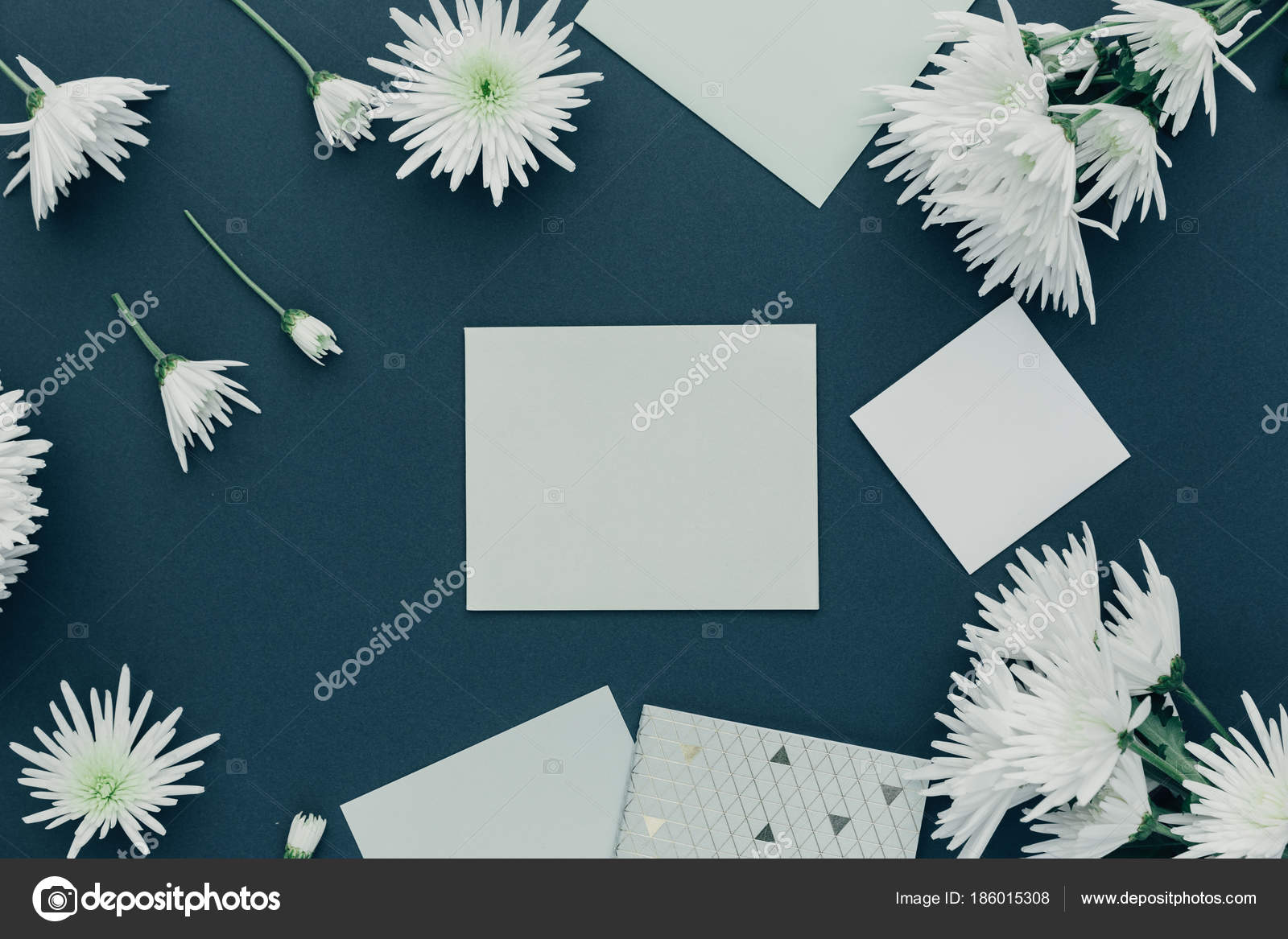 Flat Lay Empty Card Pastel Blue Background Wedding Invitation Cards Stock Photo C Victoriabee 186015308